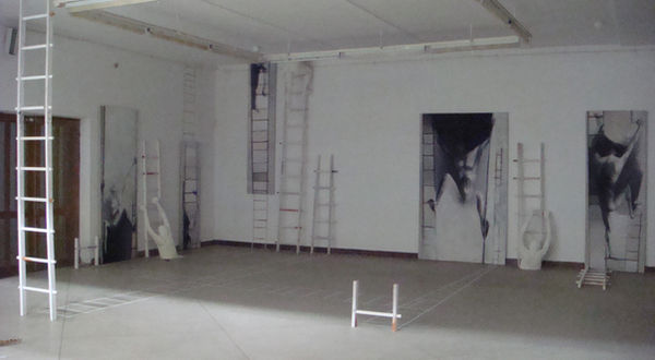 Wooden ladder, sand, photos. 500x500x500 cm.